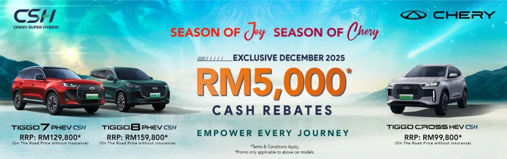 Adding to the festive excitement, customers who test-drive any Chery PHEV model between 9 December 2025 and 6 January 2026 will automatically be entered into a lucky draw with prizes worth up to RM200,000, including the Grand Prize – a TIGGO CROSS HEV.